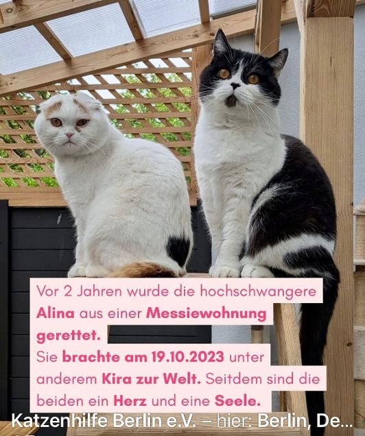 Nach 2 Jahren in der Katzen-WG wünschen sich die beide Süßen – so wie wir (alle Vereinsmitglieder und Ehrenamtliche)– ein schönes, liebevolles Zuhause mit Zeit und Zuwendung, wo Kira und Alina wie Familienmitglieder herzlich aufgenommen werden.
