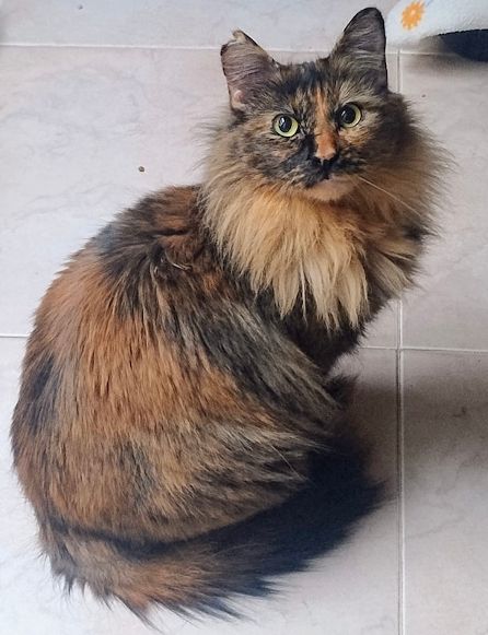 Amber ist ein langhaariges Schildpattkätzchen, geboren etwa im April 2024. Ihre Geschichte beginnt in Spanien, auf einem verlassenen, unbebauten Grundstück mitten im Zentrum der Stadt Jaén. Dort wurde Amber geboren und verlor schon früh ihre Mutter. Nur dank einer aufmerksamen Nachbarin, die sie regelmäßig fütterte, konnte sie auf der Straße überleben. Als ihre Retter sie fanden, wurde sie bereits von anderen Katzen gejagt und hatte sich in ihrer Angst gefährlich nah an die Straße gewagt und wäre fast überfahren worden. Glücklicherweise konnten sie rechtzeitig eingreifen und Amber in Sicherheit bringen.