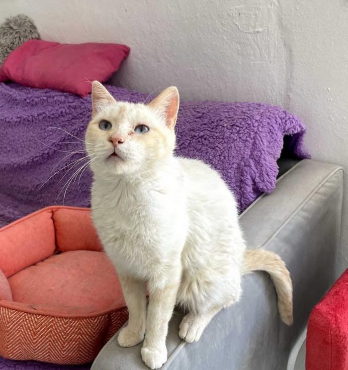 Snowball Einzelkater Geschlecht: Kater, Kastriert Geburtstag:01.04.2015 Rasse: Europäisch Kurzhaar Farbe: Weiß Verträglichkeit: Einzelkatze, Hunde, ältere Kinder, Testungen: FIV positiv / FeLV negativ Krankheiten/Handicaps: keine bekannt Haltungstyp: Wohnung mit gesicherten Balkon/Garten Aufenthaltsort: Pflegestelle in Coin Aufnahme: 12.2021 Snowball wurde mit Ohrenkrebs auf der Straße gefunden. Weiße Katzen sind besonders gefährdet bei starker Sonneneinstrahlung an Ohrenkrebs zu …