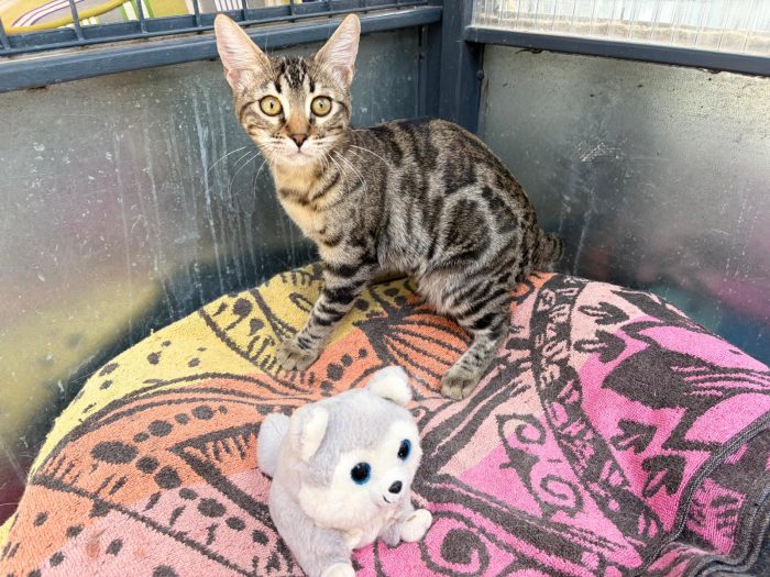 Nina kam mit ihren vier Geschwistern ins Tierheim. Alle fünf sind sehr verspielt und interressierte junge Katze (Bengalen-Mix) – Spanien