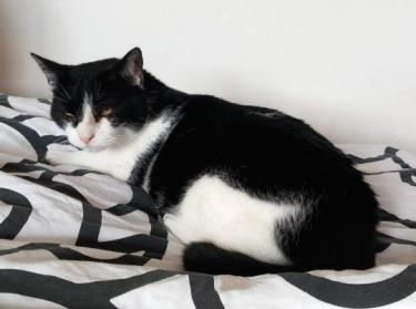 Wenn Cielo von seinen Spaziergängen zurückkehrt, springt er ins Bett und teilt seinen Menschen lautstark mit, was er draußen so erlebt hat und ist der Meinung, dass er nun mit Aufmerksamkeit und ausgiebig kraulen belohnt werden sollte. Nach ein paar Minuten ist er dann zufrieden.