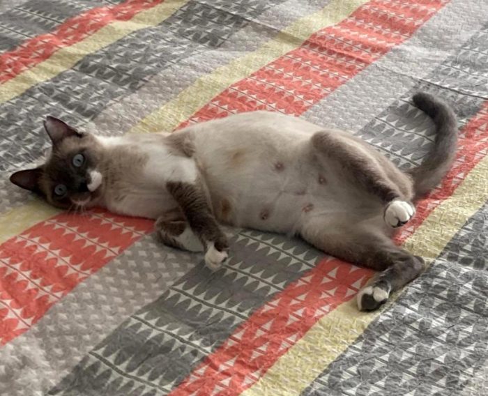 Mabel wurde in der Tierarztpraxis abgegeben, man wollte sie nicht mehr, sie hatte Kitten gehabt und eine Kastration wollte man nicht bezahlen. So wurden wir gefragt ob wir die hübsche Katze aufnehmen wollten um ihr ein schönes Zuhause zu finden.