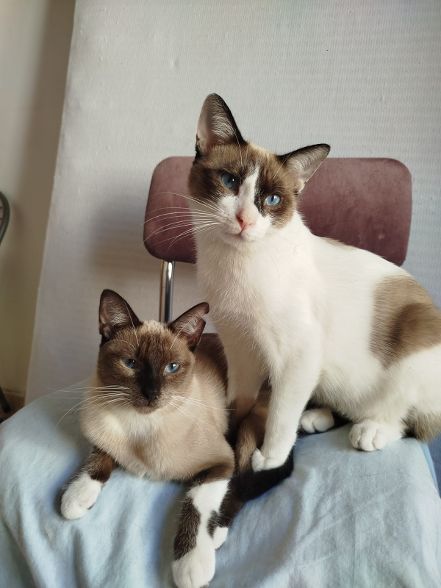 Beide sind sehr sozial und verstehen sich mit den anderen Katzen und auch den Hunden auf der Pflegestelle. Und das obwohl sie in der Kolonie von Hunden angegriffen wurden.