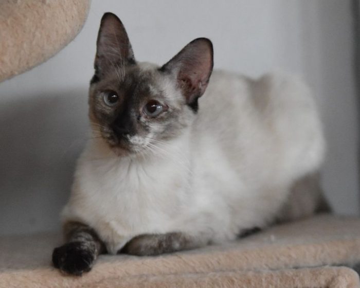 Diese Siam-Mix-Katze landete mit zwei Schwestern (alle geb. 2024) in einer Perrera im Süden Spaniens. Daher wünscht das kleine Mädchen sich nur eines: Sie will so schnell wie möglich in ein schönes Für-immer-Zuhause.