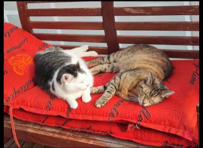 Wir sind Tinkerbell (hell) und Alia (getigert). Zwei verschmuste, unkomplizierte, ruhige Schwestern. Wir sind im Mai 2013 geboren und wurden von Hand aufgezogen. Aktuell leben wir in Todtmoos in einem großen Haus direkt am Waldrand und lieben es – vor allem in den warmen Monaten – draußen rumzustreunern. Wir sind stubenrein, kastriert, geimpft und gechipt. Außerdem sind wir kerngesund, bis auf leichte Zahnsteinprobleme bei Alia und ein nicht perfekt geheilter Kreuzbandriss bei Tinkerbell. Andere Haustiere kennen wir nicht, mit Kindern kommen wir aber gut zurecht.