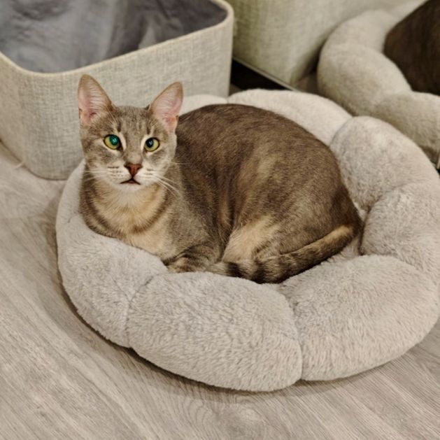 Cleo wurde zusammen mit ihren drei Kitten auf der Straße gefunden. Ob sie davor ein Zuhause hatte oder schon immer auf der Straße gelebt hat, wissen wir nicht. Sie ist uns Menschen aber auf jeden Fall sehr zugetan und liebt es gekuschelt zu werden. Am allertollsten findet sie es, auf dem Schoß zu sitzen und zu entspannen. Aber klar, sie ist ja noch jung, also ist sie auch für ein Spielchen ab und an gerne zu haben.